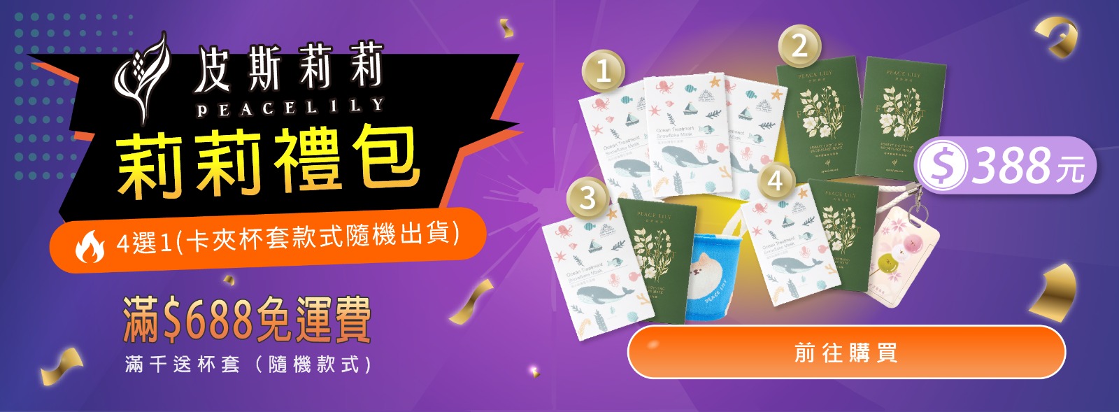 推薦商品 週年慶禮包 NT$2,168 超值雙禮包 NT$2,388 成為皮斯莉莉會員享多重優惠 莉莉禮包 NT$388 皮斯莉莉會員享七折優惠,每盒$175元 皮斯莉莉海洋修護雪花面膜1盒/3片 NT$250 皮斯莉莉會員享七折優惠,每盒$245元 森林舒緩雪花面膜 NT$350 皮斯莉莉會員享七折優惠,每瓶$1365元 覓光-極致修護精華液(佛手柑精油型) NT$1,950 皮斯莉莉會員享七折優惠,每瓶$1295元 覓光-極致修護精華液(無香型) NT$1,850 皮斯莉莉會員享七折優惠,每瓶$1180元 覓光-極致修護精華乳(無香型) NT$1,685 皮斯莉莉會員享七折優惠,每瓶$1250元 覓光-極致修護精華乳(佛手柑精油型) NT$1,785 特價商品不列入會員折扣 卡套-雪花冰淇淋(伸縮扣顏色隨機) NT$75 特價商品不列入會員折扣 卡套-流鼻涕小雞(伸縮扣顏色隨機) NT$75 特價商品不列入會員折扣 卡套-棉花糖莉莉(伸縮扣顏色隨機) NT$75